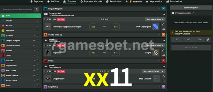 O xx11 oferece uma grande seleção de opções de apostas em e-sports com probabilidades competitivas